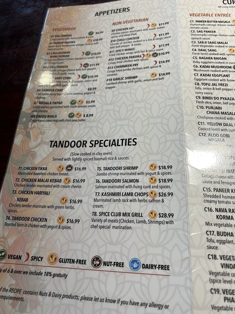Spice Club Fine Indian Cuisine Menu (Update 2025)